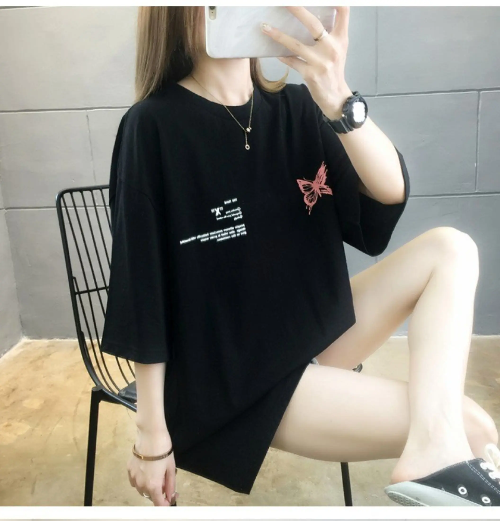 Đặc tính sản phẩm [HCM][FREESHIP TOÀN QUỐC] Áo thun nữ form rộng in bướm xanh cá tính phong cách Hàn Quốc