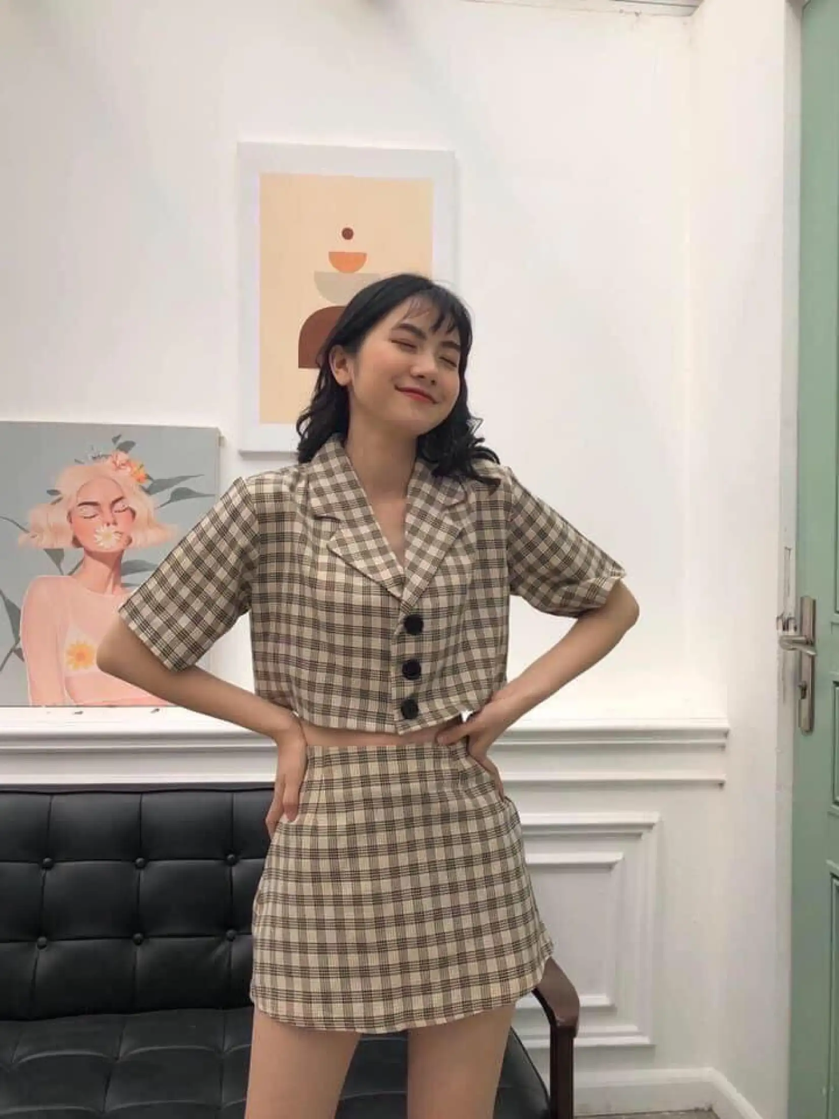 Sét váy kẻ nhiều màu siêu hót / set áo vest và chân váy kẻ vintage
